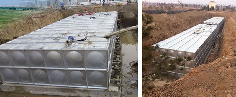 四、按照圖集及技術(shù)要求進(jìn)行組裝,用Φ10*30熱浸鋅螺絲與環(huán)保耐水抗老化膠條組裝而成,地埋式箱泵一體化的水箱組裝成型后,進(jìn)行拉筋及頂柱的安裝。拉筋選用Φ48的熱浸鋅管對拉,每1米縱橫交叉安裝。頂柱選用Φ48的熱浸鋅管每平方4根均布密封處理。